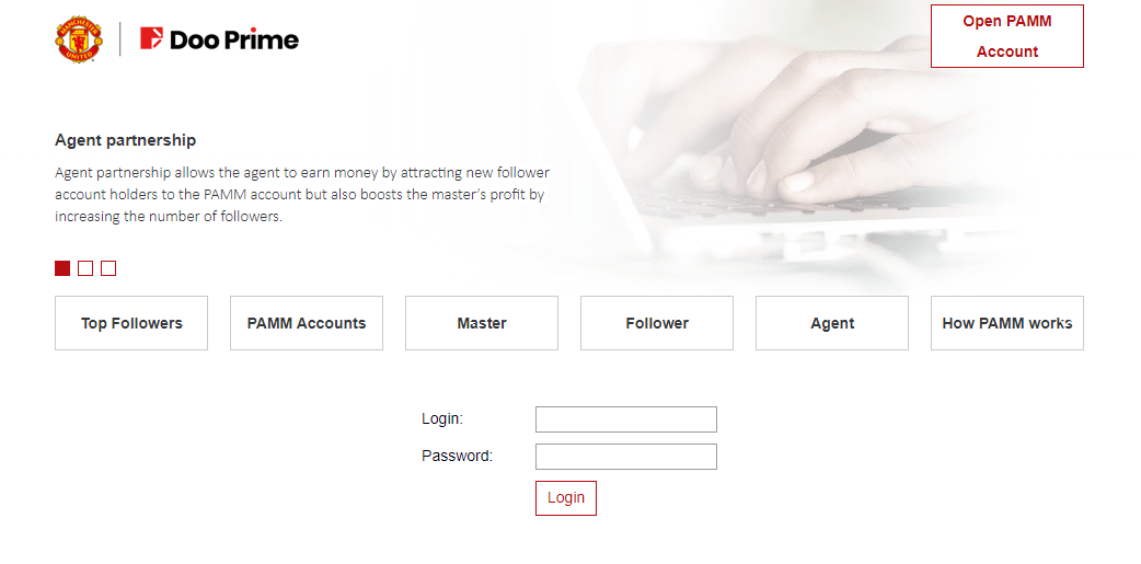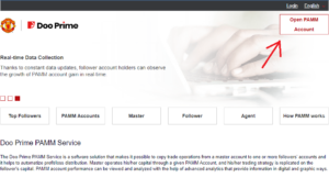 b. Click "Open PAMM Account" in the upper right corner of the homepage.