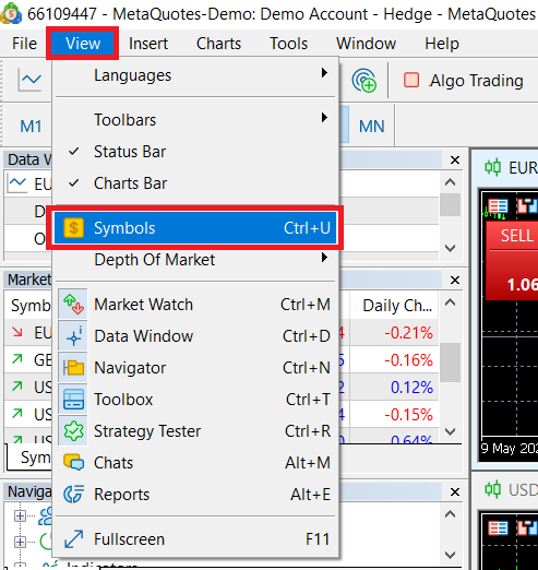 2. Select [View] in the menu bar and then click [Trading Symbol]: