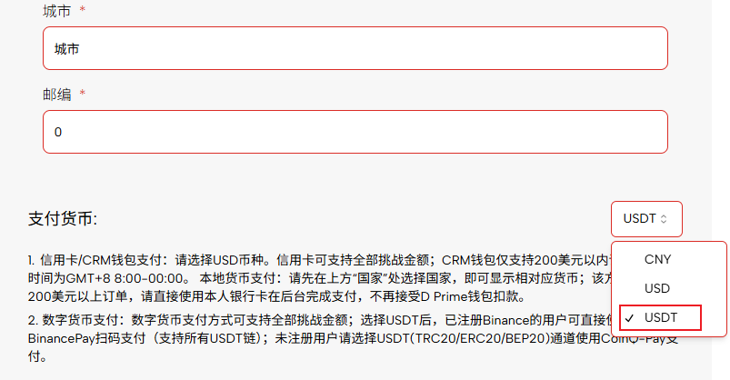 • BinancePay가 없는 사용자는 다음을 선택할 수 있습니다. USDT TRC20 / ERC20 / BEP20 채널 및 사용 코인큐페이 지불.
