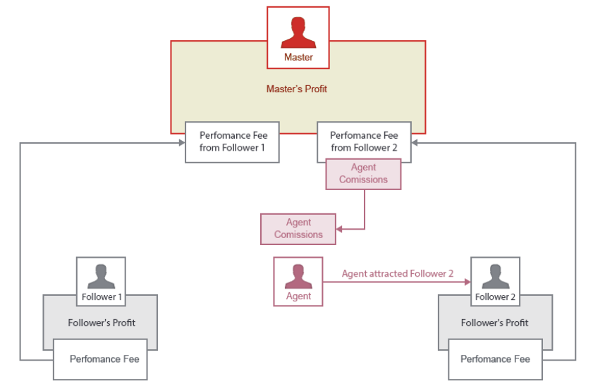 e. A conta principal paga uma certa comissão ao agente para atrair seguidores 2. A “comissão da agência” é deduzida da taxa de performance do seguidor 2.