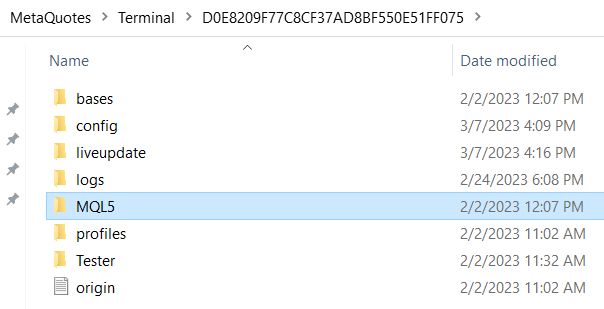 2. Depois de abrir o arquivo MQL5 na pasta de dados, selecione a pasta de destino: