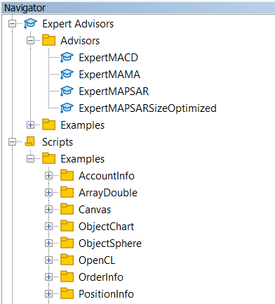 • Especialistas (arquivos da pasta de negociação da EA)