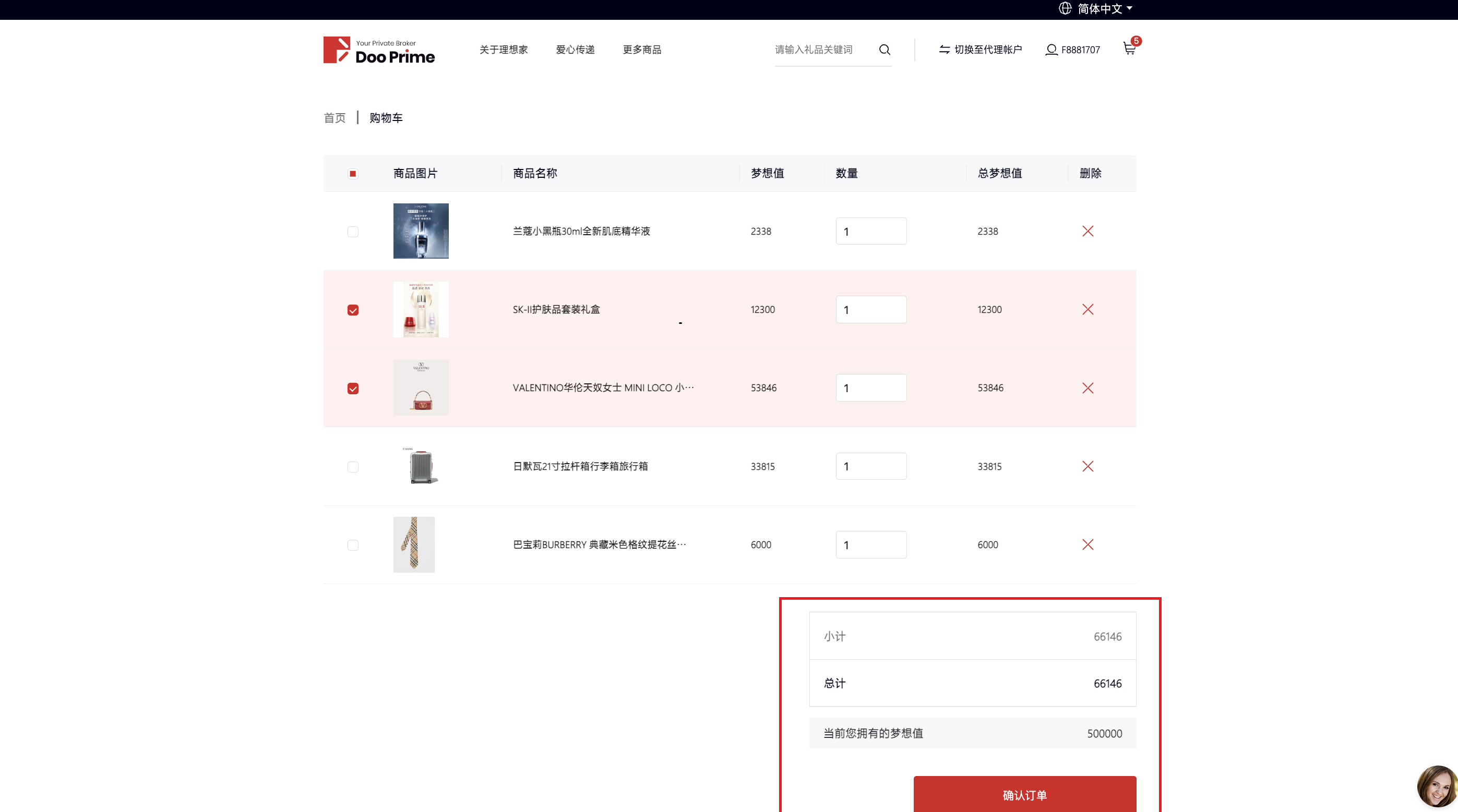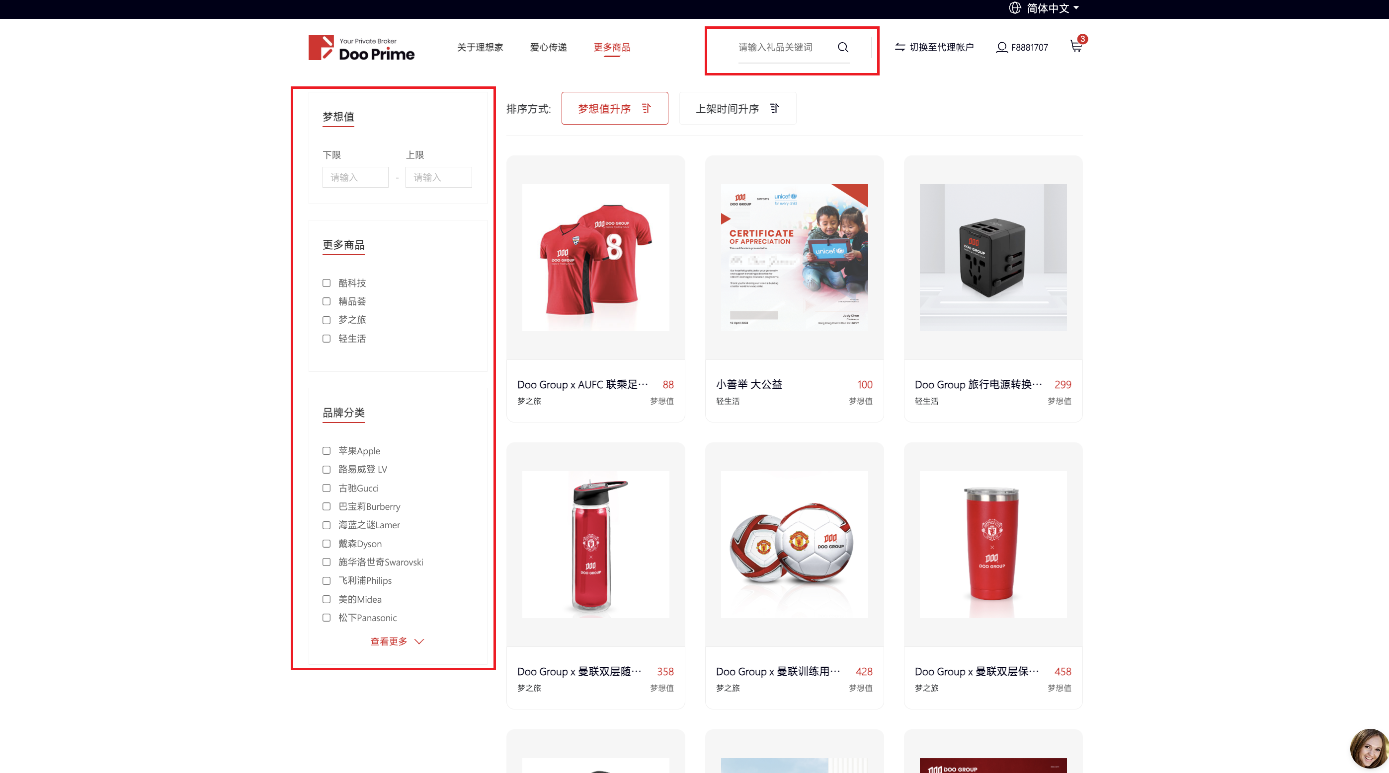 1. 登录 Doo Prime「理想家」积分商城,按照名称/梦想值价值/品类/品牌搜索你想要的礼品