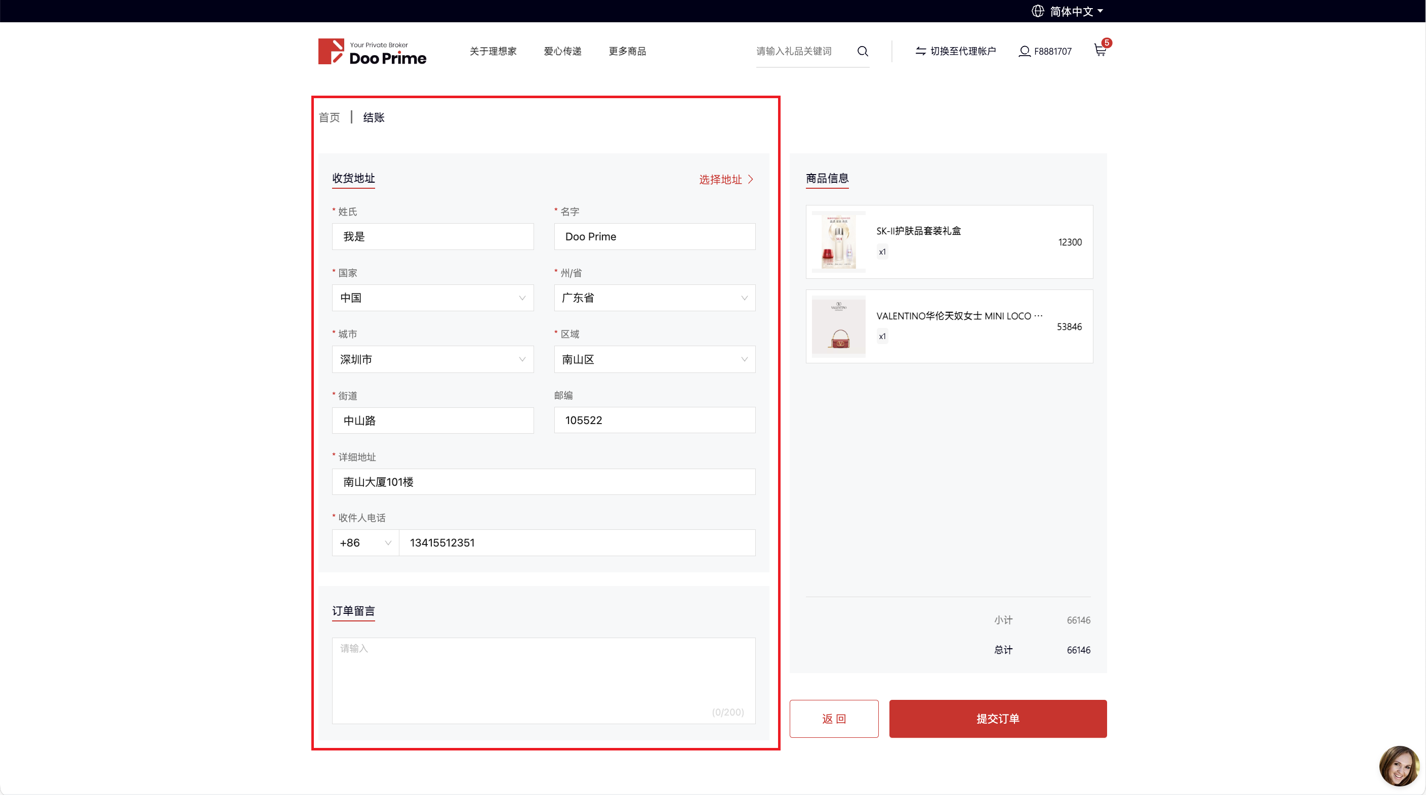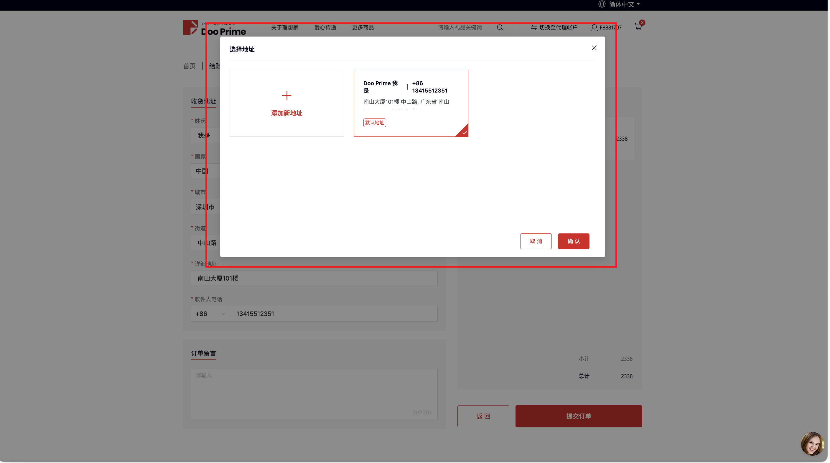 4. 填写收件信息并提交订单即。亦可设定默认地址,最多可储存20个自定义地址。