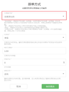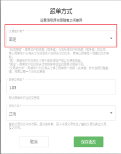 最小手数:跟随者可选择跟随交易量的最小手数。信号源的交易量低于设置的交易量时,将不会跟随。