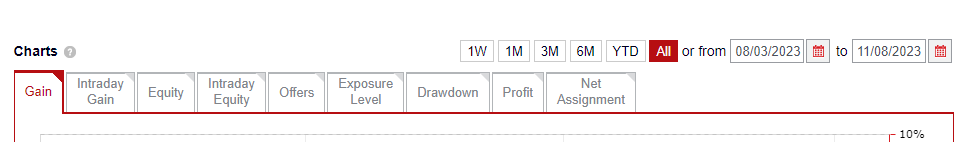 c. 如果使用者希望建立報價或管理大師帳號的設置,請點選活躍帳號清單中所需的大師帳號以取得更多詳細資訊。系統將產生圖表以顯示所選大師帳戶的收益、當日收益、權益、報價、曝險水準、最大回撤、利潤和淨分配。
